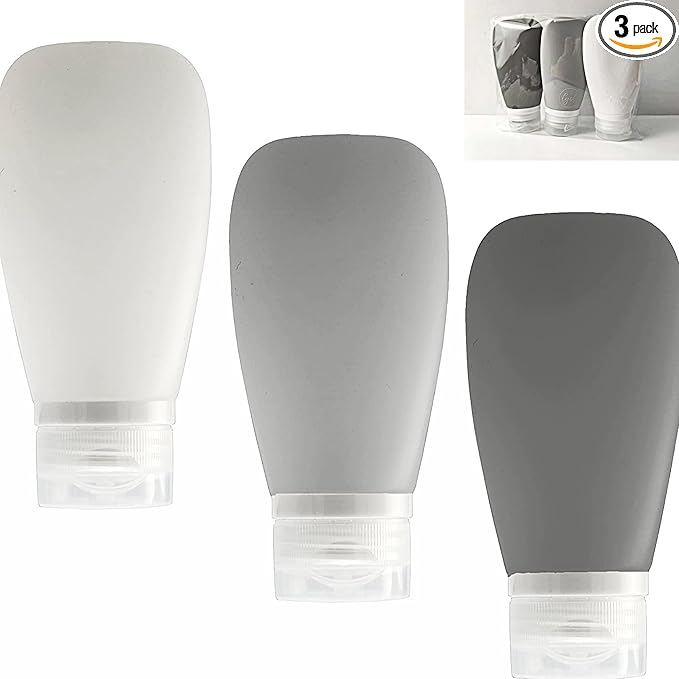 - TSA CARRY ON READY SIZE: 3oz 3-pack set of refillable containers, silicone travel bottles 90-mls just right for TSA approved size. Our signature soft squeezable on ALL sides style bottles, are refillable bottles that allows for continue refills for traveling convenience.