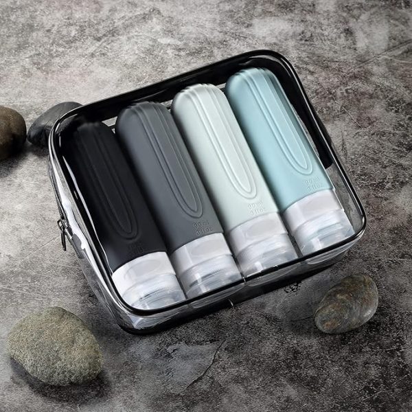Travel Bottles for Toiletries, Tsa Approved 3oz Travel Size Containers BPA Free Leak Proof Refillable Liquid Silicone Squeezable Travel Accessories for Shampoo Conditioner Lotion (4 Pack)